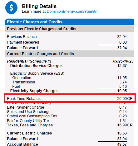 When you login to the online customer portal, you will see a graph for the most recent Peak Time Rebates event which shows how you performed.